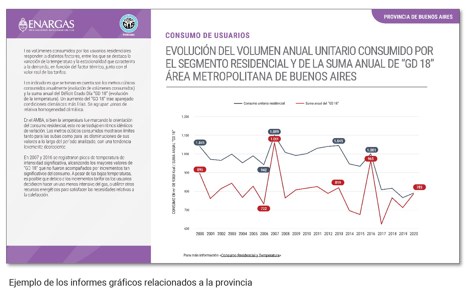 El Ente Nacional Regulador del Gas (ENARGAS) informa que pone a disposición de la ciudadanía una nueva serie de los Informes Provinciales, en la que se incorporan los datos relevados durante 2021. En esta ocasión la presentación corresponde a la provincia de Buenos Aires, en la que se detallan las características actuales de la jurisdicción respecto de la evolución del servicio público de gas por redes.