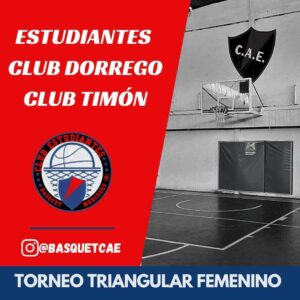 Mañana domingo 24 de octubre en el Club Estudiantes, a partir de las 9:30 se realizara un triangular femenino de básquet. Participaran del mismo Club Dorrego, Club Timón y Club Estudiantes. Habrá servicio de cantina y la entrada general tendrá un costo de $100.